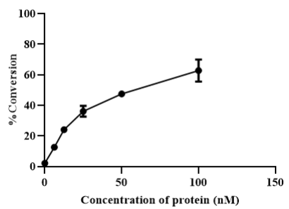 KeyTec® CDK10/CycM, N-GST/N-FLAG (Sf9) 重组蛋白经过多种方法的检测与鉴定,其纯度,聚合状态和激酶活性等性能均通过药科元产品质量检测标准。SDS-PAGE 结果显示,蛋白纯度在 95%以上。SEC 色谱分析结果显示,蛋白复合体在溶液中为单体形式。ADP-Glo 结果显示,该批次蛋白具有很高的酶活性。