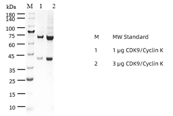 分 子 量: CDK9:68.6 kDa; Cyclin K: 37.2 kDa