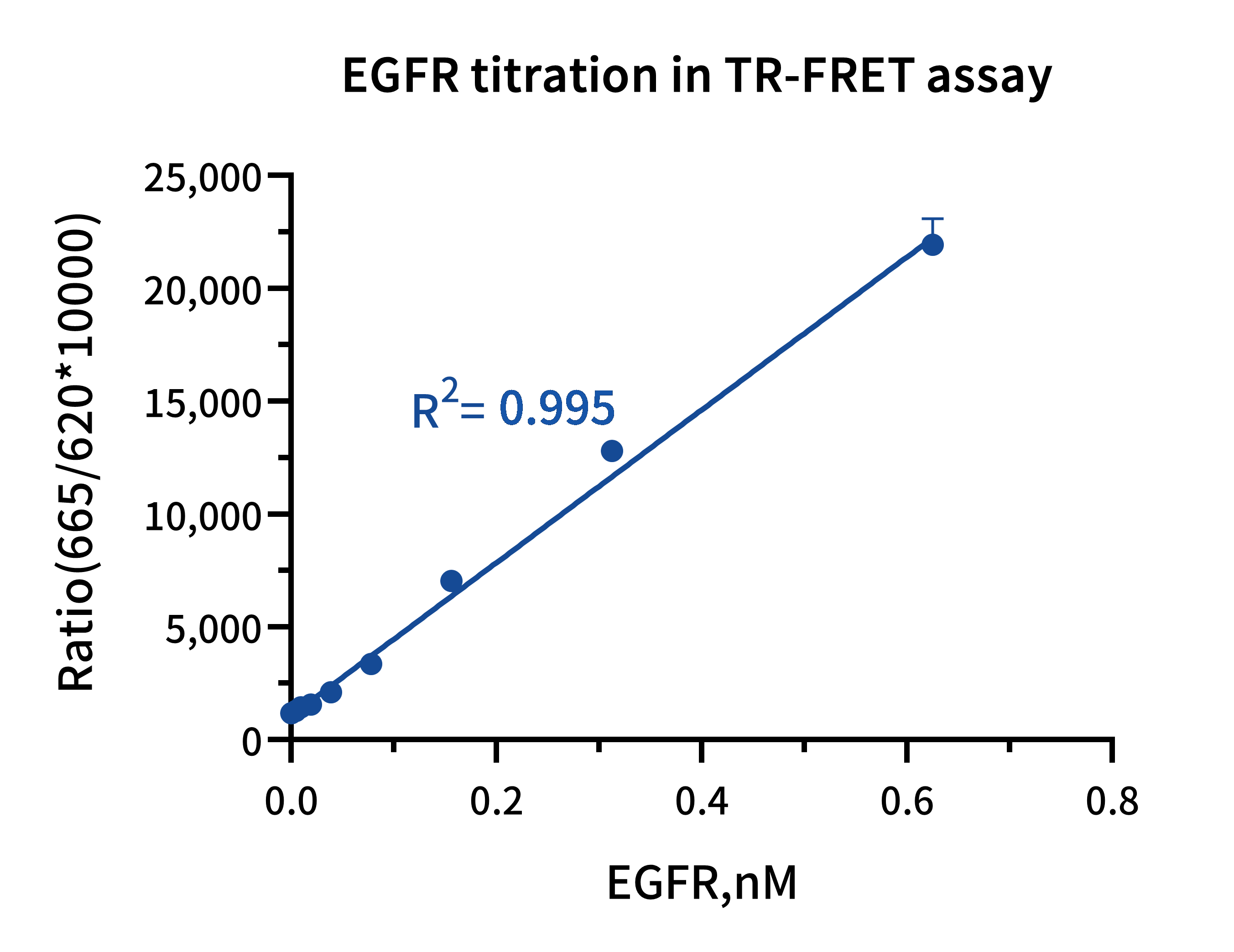 KeyTec® EGFR, N-GST重组蛋白的N端连接了GST标签,使用GST亲和力层析纯化。经过TR-FRET方法的验证,该批次EGFR蛋白具有很高的酶活性。