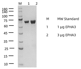 KeyTec® EPHA3, N-GST重组蛋白的N端连接了GST标签及TEV酶切位点,使用GST亲和层析纯化并通过SEC色谱分析蛋白聚合状态。SEC-HPLC结果显示EPHA3蛋白在溶液中为三聚体。经过TR-FRET方法的验证,该批次EPHA3蛋白具有很高的酶活性。