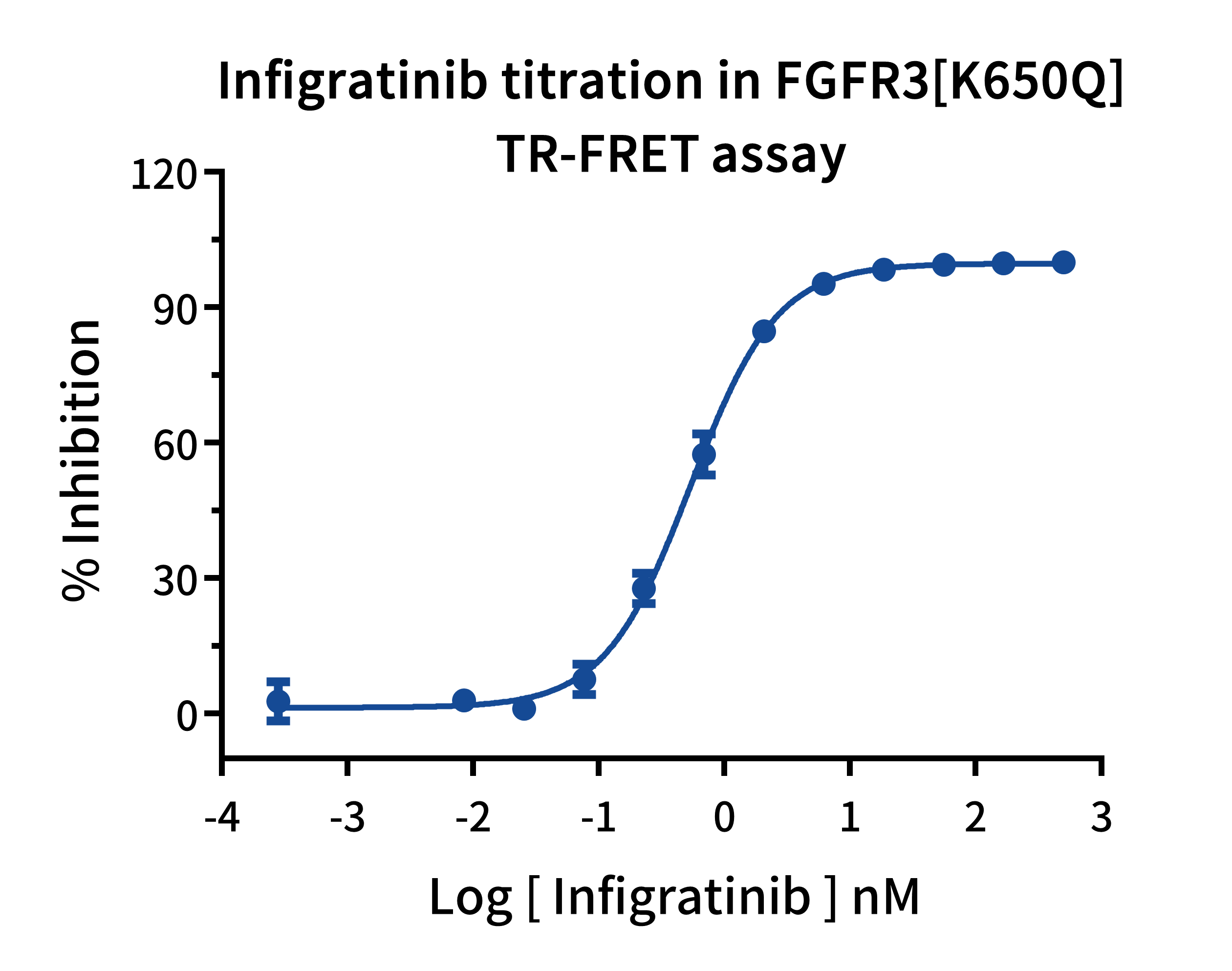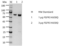KeyTec® FGFR3[K650Q], N-GST重组蛋白的N端连接了GST标签及TEV酶切位点,使用GST亲和层析纯化并通过SEC色谱分析蛋白聚合状态。SEC-HPLC结果显示FGFR3[K650Q]蛋白在溶液中为四聚体。经过TR-FRET方法的验证,该批次FGFR3[K650Q]蛋白具有很高的酶活性。