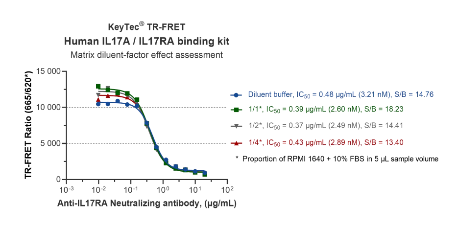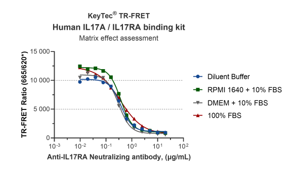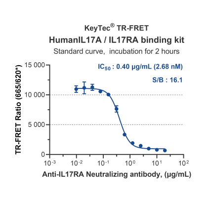 KeyTec® TR-FRET Human IL17A/IL17RA结合检测试剂盒可用于测定IL17A与IL17RA蛋白之间的互作。本试剂盒运用KeyTec® TR-FRET技术,可用于小分子抑制剂、多肽或抗体阻断剂的高通量筛选,具有简单快速、准确性高等特点。