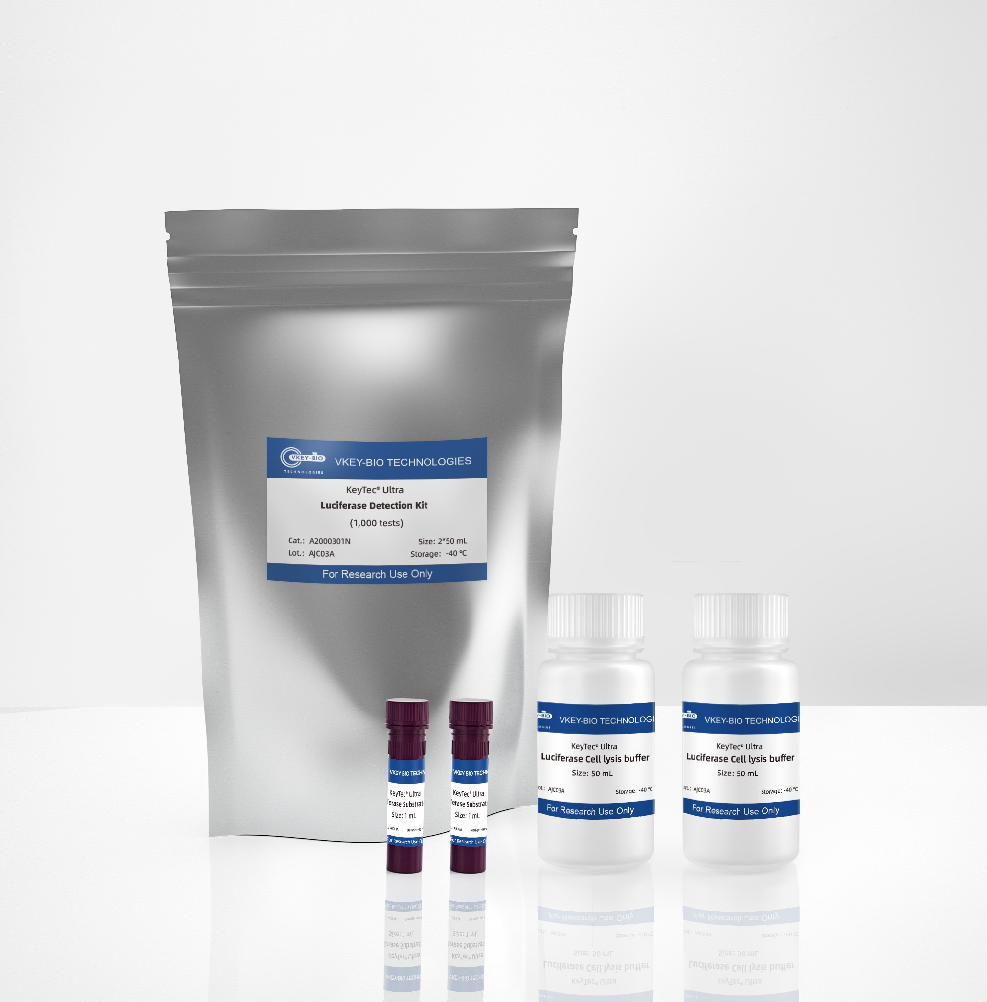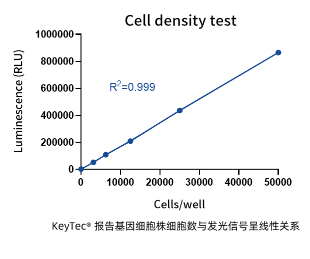 使用KeyTec® Ultra Luciferase Detection Kit对过表达萤火虫萤光素酶的HEK 293细胞进行检测,测得的发光信号与细胞数量成正比。使用含10% FBS 的DMEM 培养基,在96 板中对 HEK 293 细胞从50,000个细胞起始进行2倍稀释,并按照说明书中“五、实验流程”所述进行检测,加入试剂 5 分钟后,使用Envision的Luminescence程序(程序细节举例Mirror : Luminescence; Em filter : Luminescence 700; Measurement height : 6.5 mm; Measurement time : 1 s) 检测发光信号。