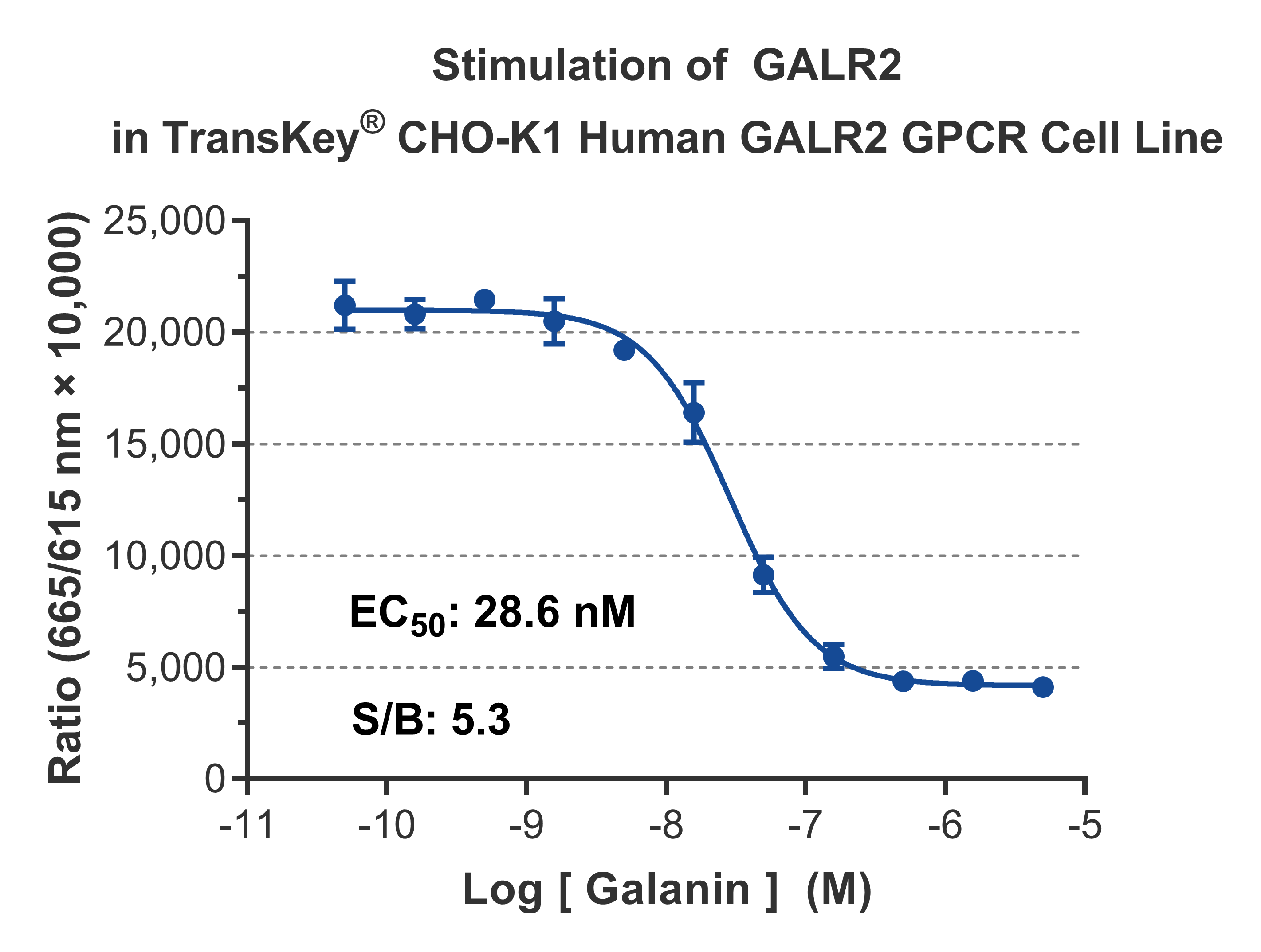 TransKey® CHO-K1 Human GALR2 GPCR细胞株是在宿主细胞CHO-K1上过表达人源甘丙肽受体2( Galanin receptor type 2,GALR2),通过检测胞内IP-1的增加量衡量受体激动剂的激动效果。功能试验采用HTRF IP-1试剂盒(Cisbio)进行信号检测。